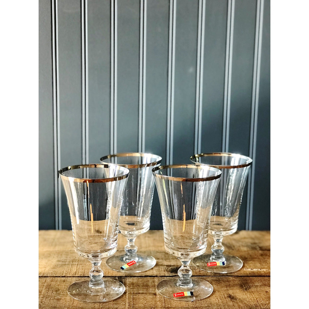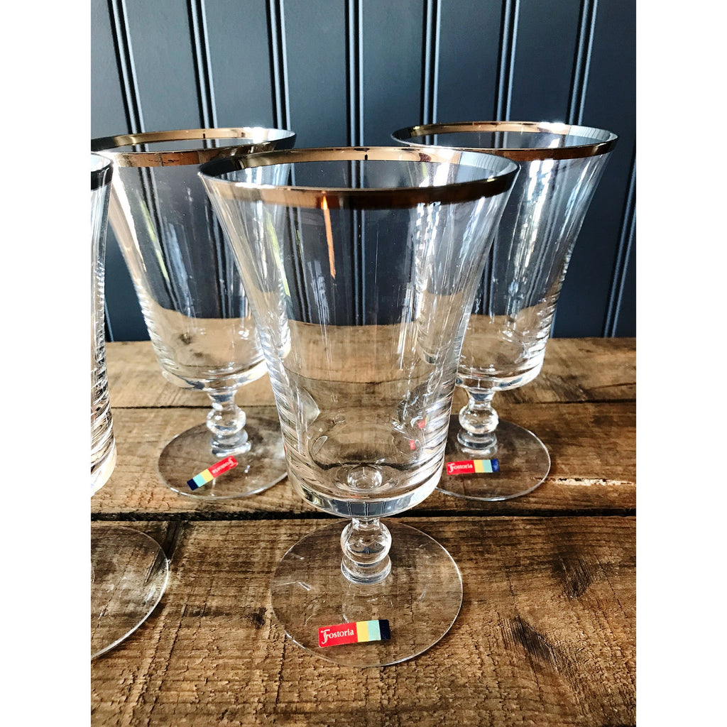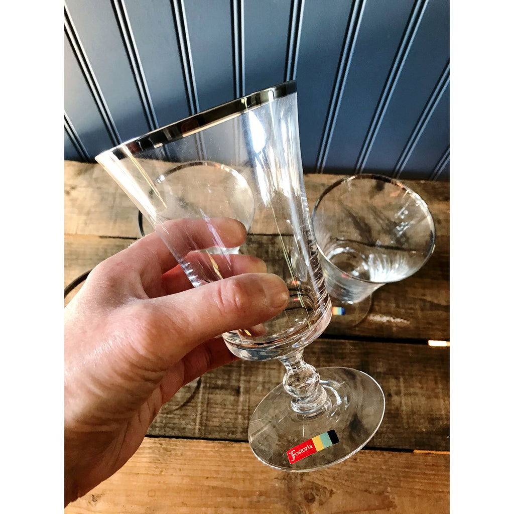 This vintage iced tea glass by Fostoria is in the Sheffield pattern. It has a stunning fluted mouth trimmed in silver. Sheffield was manufactured between 1961 - 1982. Sold as open stock (single glass), please select quantity desired from drop down menu. Each glass stands 6 1/2" high with a 3 1/2" wide mouth and holds 10 fluid ounces. It has no chips or cracks and is in excellent condition.